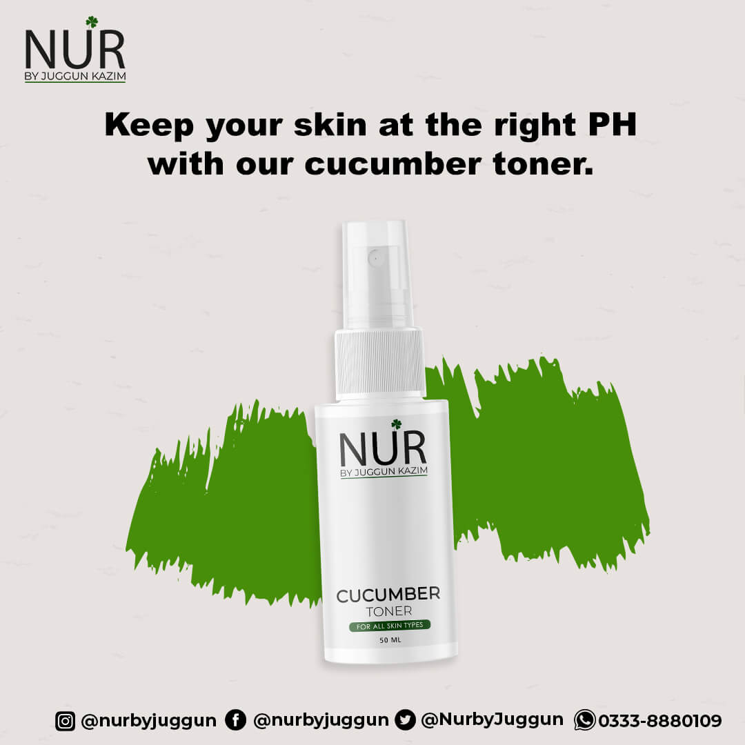 Nur by Juggun Kazim Cucumber facial toner is suitable for all skin types, even for people with sensitive skin. It moisturizes dry skin, soothes irritated skin, regulates sebum and shrinks pores on oily skin, and nourishes devitalized skin.