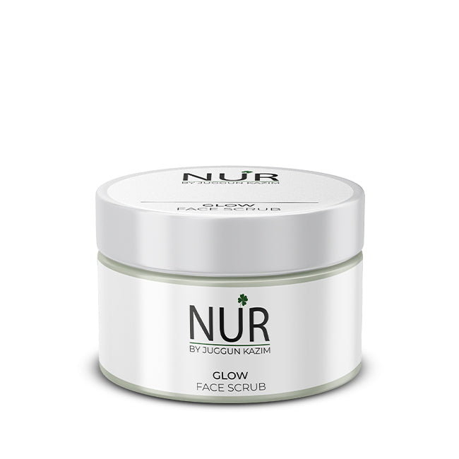 Take dime sized amount of NUR Face Glow Scrub onto your fingertips and massage onto damp skin.