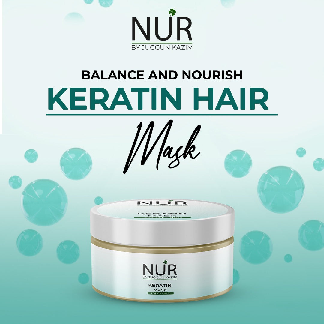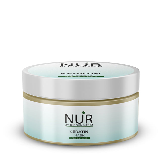 NUR Keratin Hair Mask works by smoothing down the overlapping cells to form your hair strands. The layers of cells, called the hair cuticle absorb the keratin, resulting in complete and glossy hair. NUR Keratin Hair Mask also makes curly hair less frizzy, more accessible to style, and straighter in appearance. This mask keeps hair moisturized while eliminating excess oil to look clean, shiny, and voluminous.