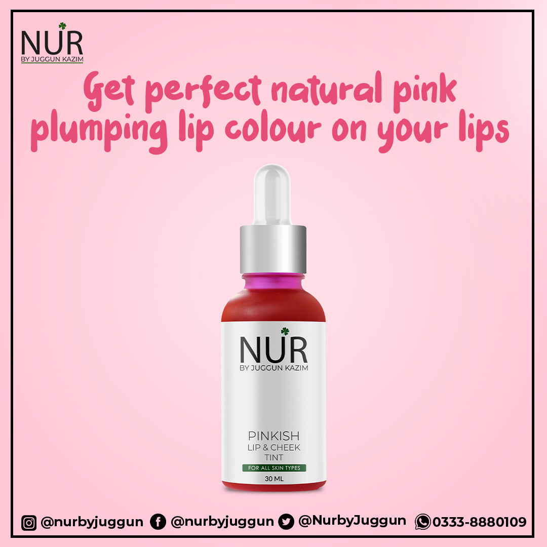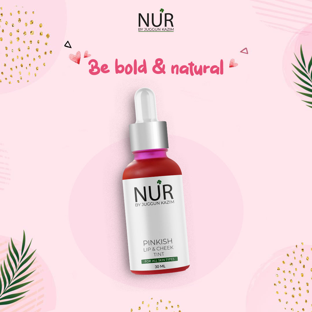 NUR Pinkish Lip & Cheek Tint is a liquid stain for lips, cheeks and eyelids that give your face a fresh look and brightens lips & cheeks with a cheery pop of colour. Pinkish Lip tint, by contrast, is sheer and easily smudge across the lips. However, they come off quickly and provides a much more natural look. Cheek Tint is the secret to a fresh, natural flush. Blush for the anti-blush. The liquid cheek tint is easily blendable, sink seamlessly into skin without imparting the powdery finish or over the top colour that gives blush, its lousy reputation.